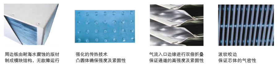 1、逆流板式熱交換器采用耐海水腐蝕的優(yōu)質(zhì)親水涂層鋁箔做傳熱導體,采用特殊工藝加工而成,具有換熱效率高,易于維護,壽命長等特點